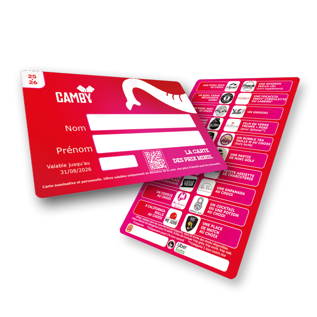 Ta ville regorge de bons plans ! Avec la carte Camby Chambéry, profite d’avantages exclusifs et économise partout où tu sors.